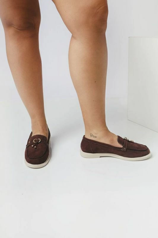 Modelo mocassim com acabamento em camurça suede para um visual clássico e atemporal.