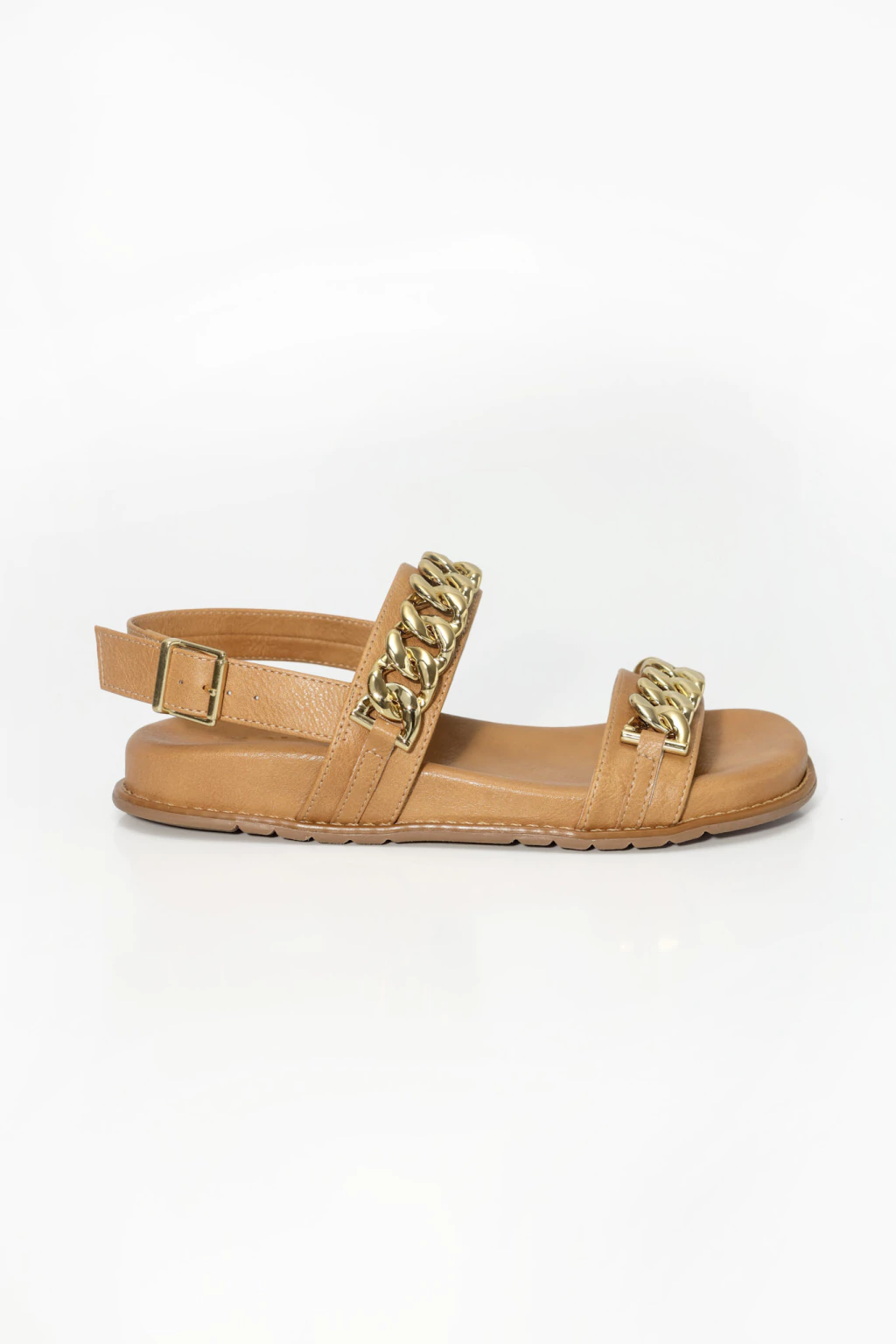 A Elise Bege traz o equilíbrio perfeito entre leveza e sofisticação. O tom neutro é elegante e versátil, enquanto as tiras com correntes douradas elevam o visual com um toque de brilho refinado.