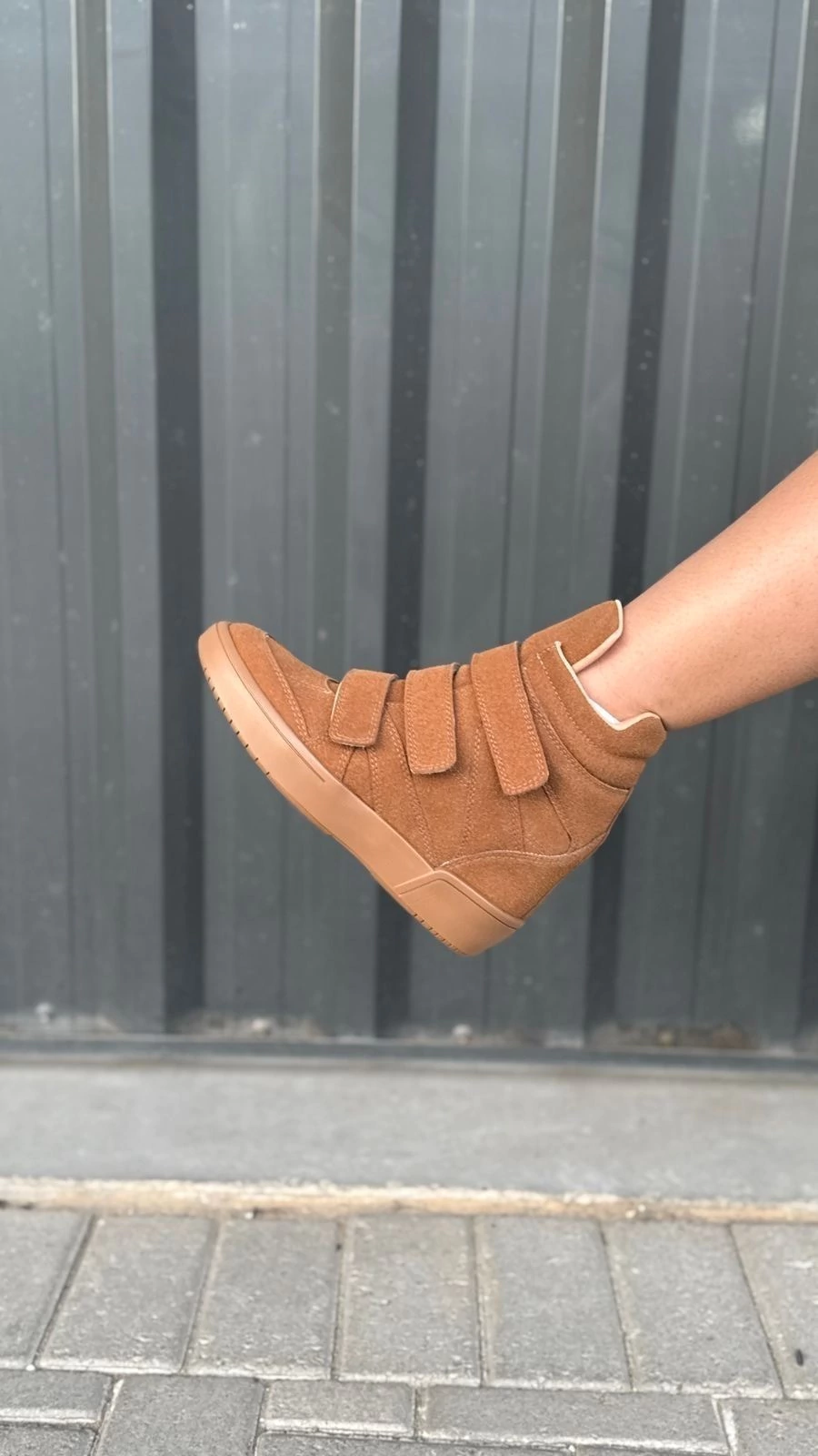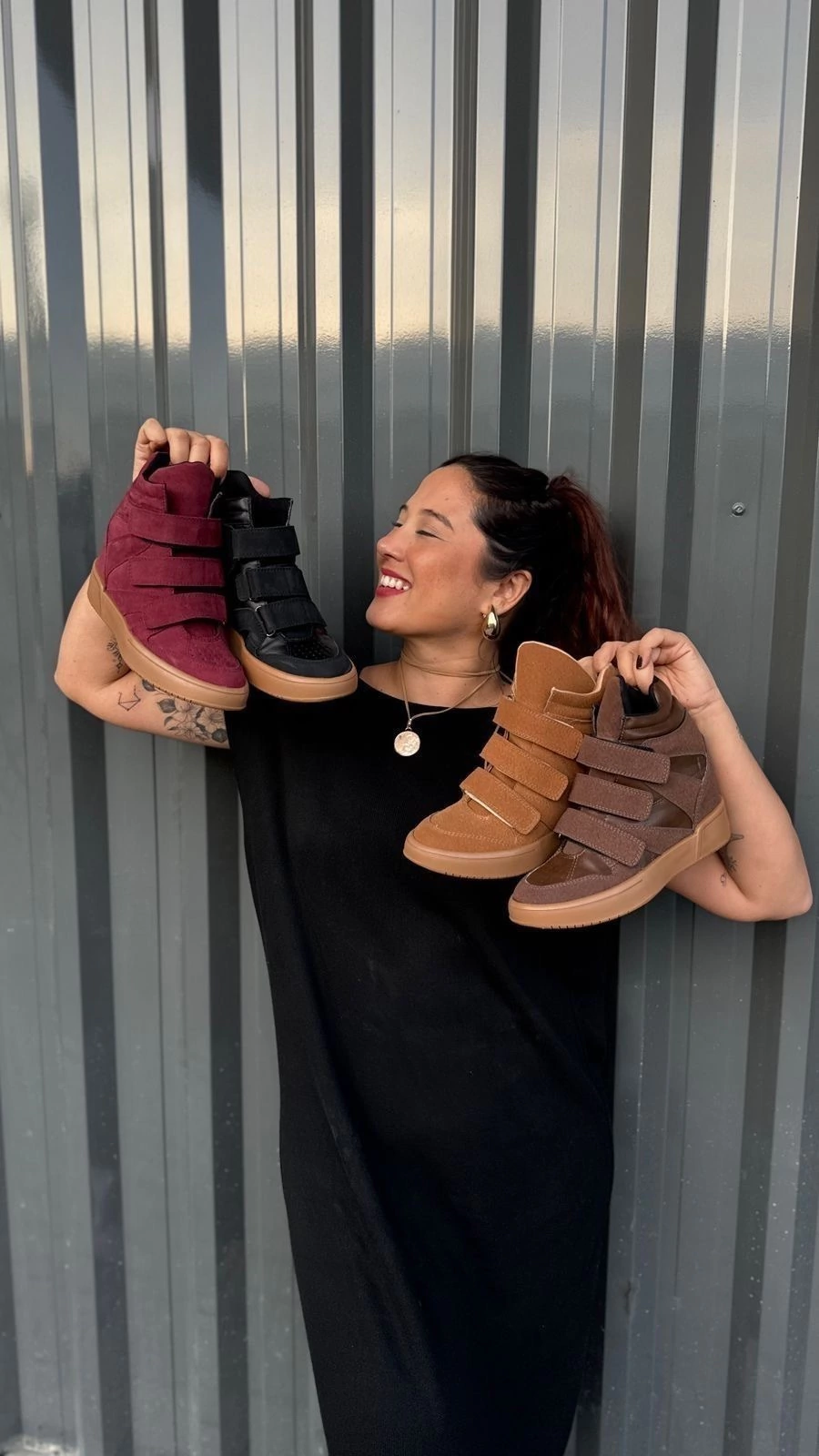 O retorno mais estiloso dos anos 2010 chegou com tudo! Nosso tênis de salto alto em camurça marrom traz de volta a estética nostálgica dos icônicos sneakers de salto, queridinhos de uma geração inteira. Agora, repaginado com conforto, atitude e muito estilo.