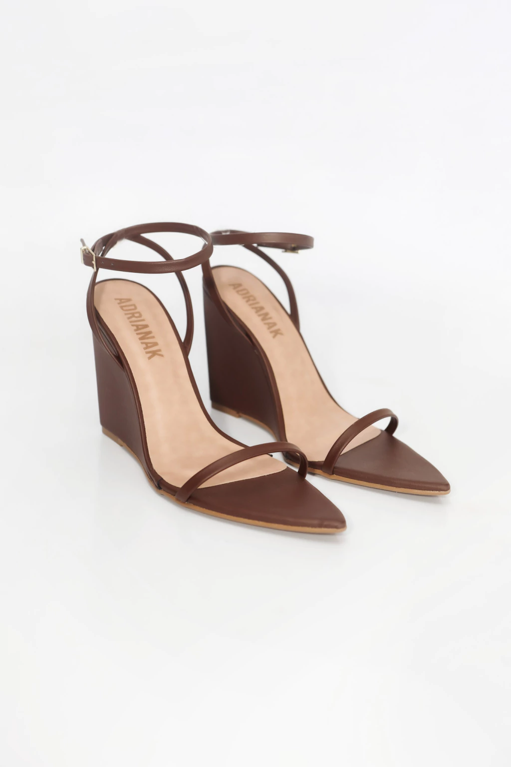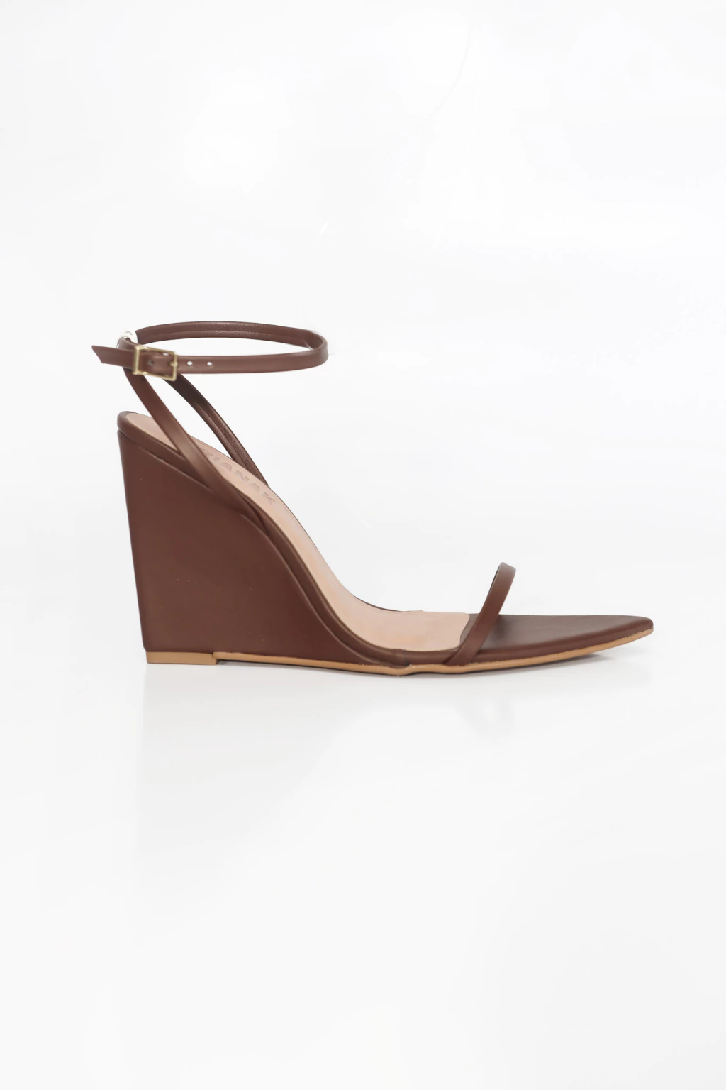 Leoni – Sandália Tira Fina Bico Folha Salto Anabela Feminino Marrom