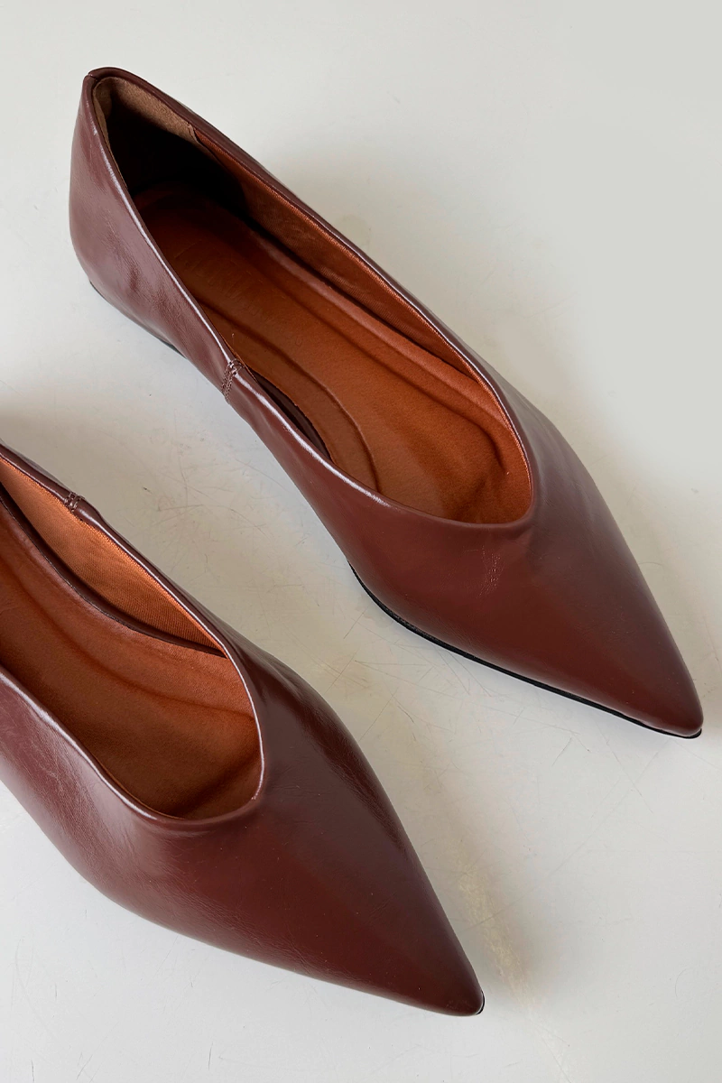 A Li é a sapatilha que une praticidade e sofisticação em um design atemporal. O bico fino alonga a silhueta e acrescenta elegância imediata ao visual, enquanto o tom marrom neutro garante versatilidade para diferentes ocasiões.