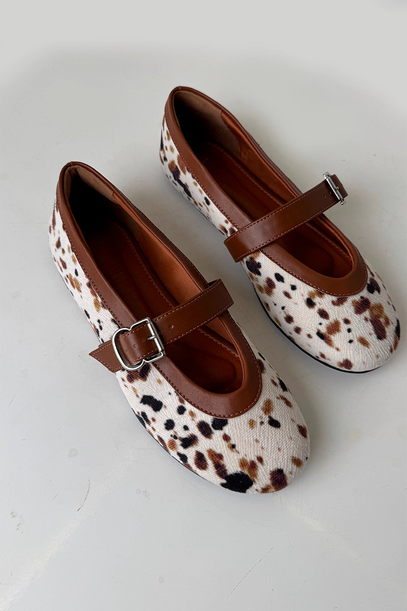 Marcela – Sapatilha Bailarina Bico Redondo com Fivela Cow Print Mix