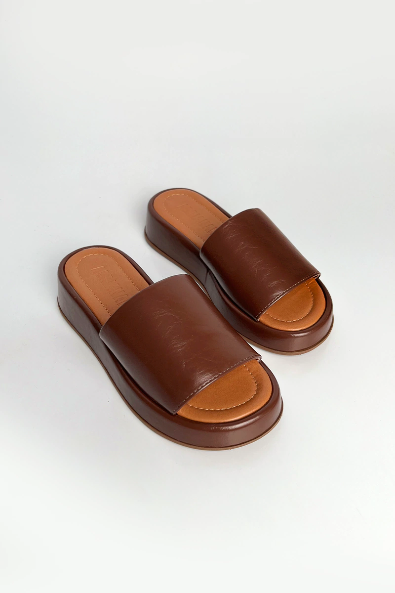 Telma – Papete Salto Plataforma Baixo Tira Reta Clássica Feminina Marrom